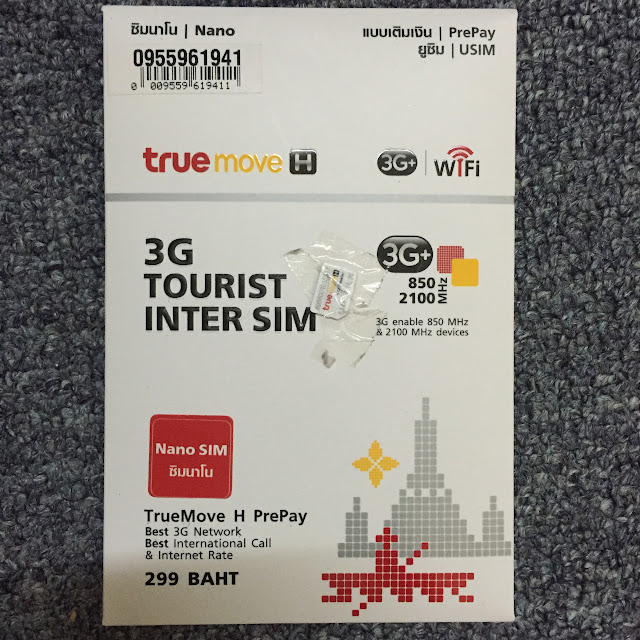 Keluar daripada pintu arrival selepas ambil bagasi semua, terus menuju ke kaunter TrueMove H untuk beli simkad sana sebab nak call tuan rumah tu nak bagitahu dah sampai airport. Beli prepaid SIM card TrueMove H 3G packages - 299 Baht untuk 7 hari (mobile data, prepaid untuk calling2 orang). Bagi je handphone dekat orang yang jaga kaunter beserta passport. Nanti diorang setting kan semua, bayar jumlah package yang kita ambil dan tunggu beberapa minit untuk guna.