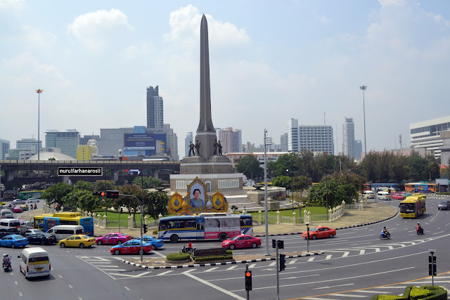 Hari kedua kitorang nak pergi bandar Bangkok, naik bas biasa dari Don Mueang ke Victory Monument, 30++ km macam tu sebab bas berhenti-henti dengan harga 18Baht seorang. Sesudah sampai Victory Monument turun bas ambil BTS (LRT kalau dekat Malaysia) pula ke stesen Siam, harga seorang sudah lupa. Naik ikut Sukhumvit Line (Green Lane) dari Victory Monument ke Siam.