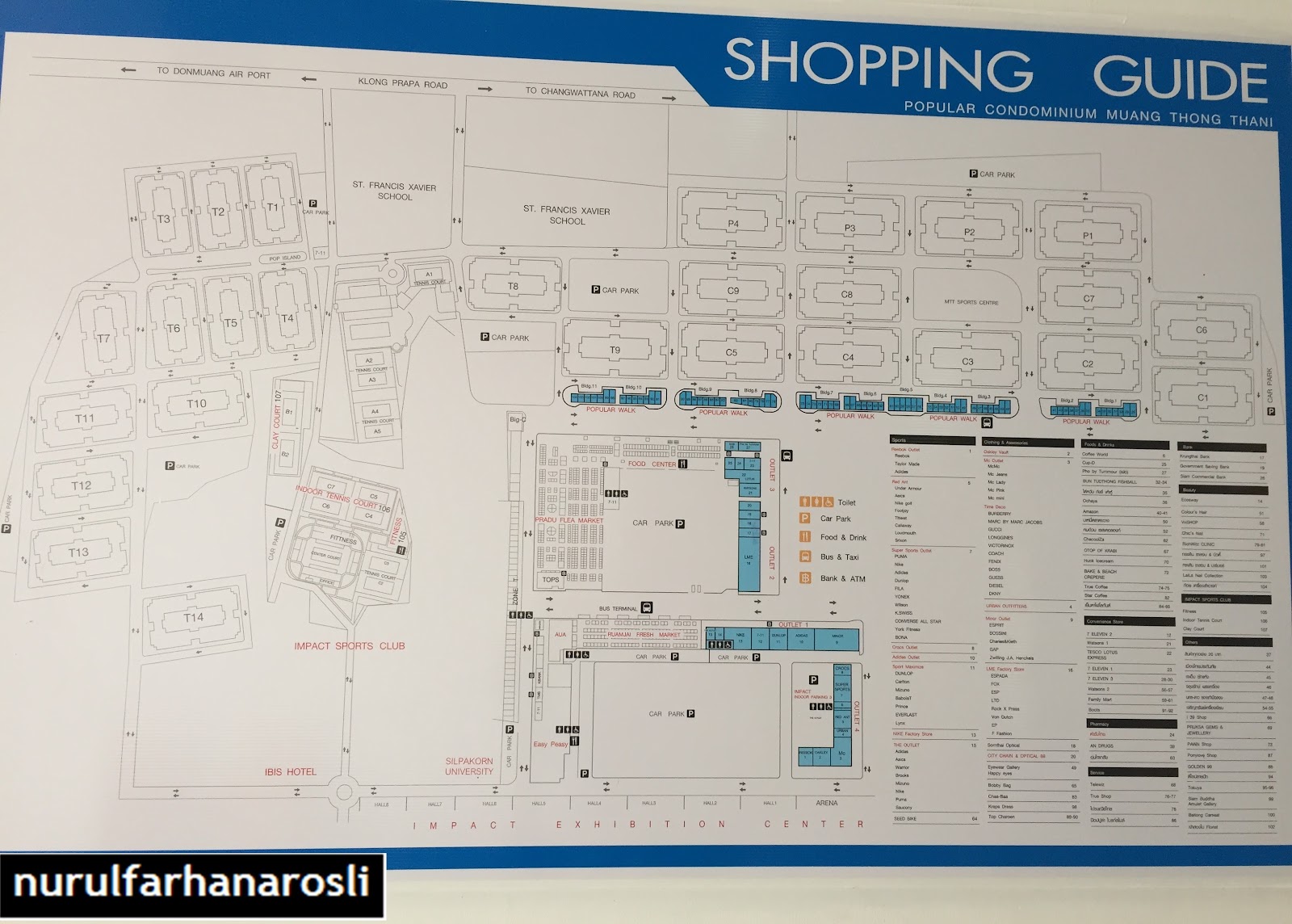 Map dekat atas ni ada dekat tingkat bawah berdekatan lif setiap blok rumah ni. Malam sampai tu tak sempat nak teliti map tu sebab tahu nak cepat-cepat masuk dalam rumah, penat nak rehat. Esok pagi keluar nak keluar pergi bandar Bangkok baru teliti balik map ni, tangkap gambar siap-siap sebab nak tahu jalan pergi Thunder Dome dan apa yang ada dekat sana. Macam-macam ada.