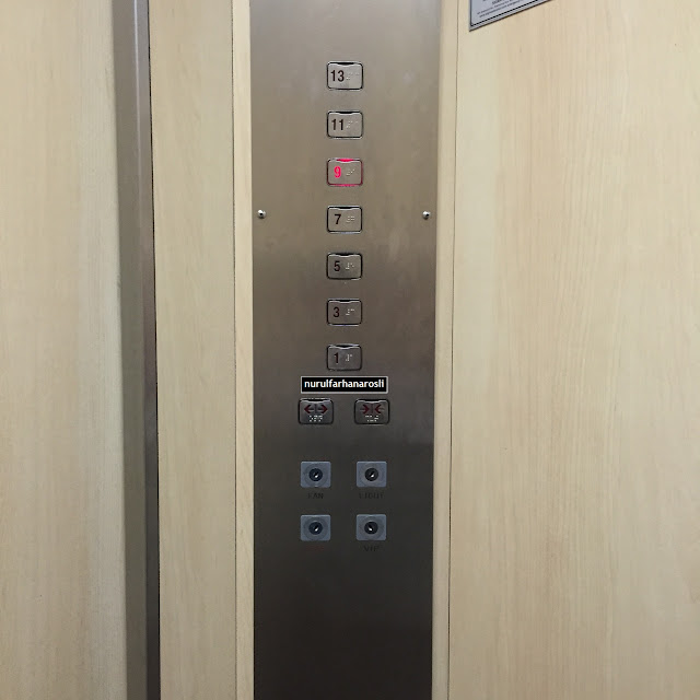 Nak masuk blok ni kena scan kad yang ada bersama kunci rumah tu dekat pintu utama, dah scan baru boleh masuk. Naik lif dan lif dia unik sebab tingkat bernombor ganjil je ada lif, Rumah dekat tingkat 8, turun dekat tingkat 9 lepas tu kena turun tangga setingkat. Rumah ala-ala rumah pangsa kena lalu lorong nasib baik rumah kedua lepas masuk lorong tu.